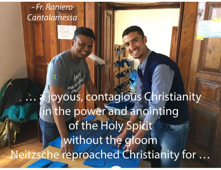 Quotation from: Fr. Raniero Cantalamessa - Quoted by Austen Ivereigh in "Jubilee in Rome highlights charismatic fruits in Francis’s Pentecost papacy", Crux, 3 June 2017, https://cruxnow.com/vatican/2017/06/03/jubilee-rome-highlights-charismatic-fruits-franciss-pentecost-papacy/