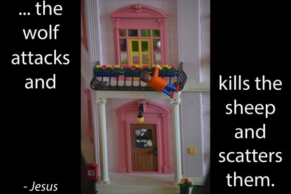 December 7, 2021 - Door of the Day Dec 7 Written By Christ The Reconciler Door of the Day #316Quotation from: Jesus - John 10:12 (IEB)Photo: Thomas Cogdell - Playmobil thiefOriginally created for Wittenberg 2017 Christ The Reconciler The community at Christ the Reconciler in Elgin, Texas