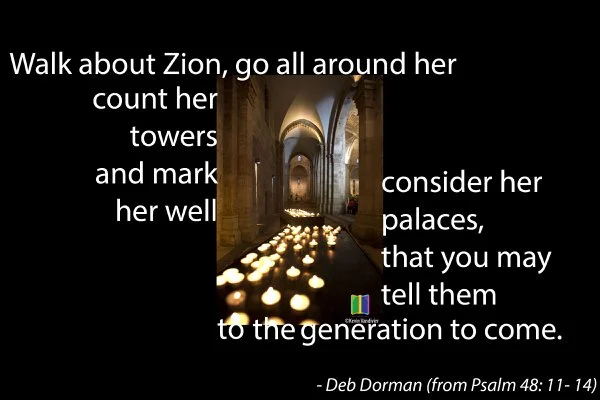 Quotation from: Deb Dorman - Walk About Zion, original song taken from Psalm 48: 11- 14